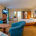 Odalarda kasa, balkon, kanepe gibi olanakların yanı sıra duş kabini, ayrı tuvalet, banyo küveti içeren bir banyo bulunmaktadır.